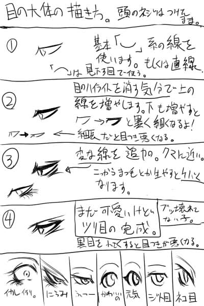 頭のネジが外れてない方用おめめの描き方ー。字が汚いね!読めない!
